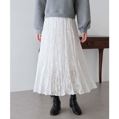 シアー感とジャガードレースが目を惹くティアードスカート。