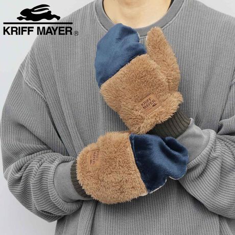 アメリカンカジュアルをテーマに誕生したアウトドアブランド”KRIFF MAYER(クリフ メイヤー)”のフードミトングローブ。秋冬定番の異素材をMIXした、切り替えデザインがアウトドアな雰囲気。ミトン部分を外して5本指を出せる2WAY仕様になっており、手袋を脱がなくてもスマホの操作や細かい作業ができます。肌に当たる裏地部分には、ファーフリース素材を使用。ふんわり滑らかな肌触りで、心地よい暖かさをキープしてくれます。外出時の寒さ対策だけでなく、コーデに取り入れるだけでシーズンムード高まるオシャレアイテム。