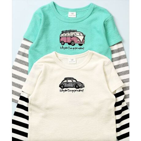 [型番:11331103]【綿100%】乗り物のアップリケが特徴な重ね着風のロンTです。さりげないバックプリント!身頃は綿100%で肌に優しい仕上がりです。サイズはベビーサイズからキッズサイズまで取り揃えており、ベビーサイズは肩あき仕様です。