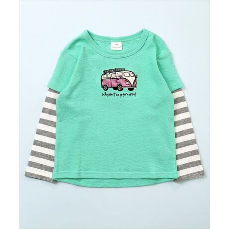 [型番:11331103]【綿100%】乗り物のアップリケが特徴な重ね着風のロンTです。さりげないバックプリント!身頃は綿100%で肌に優しい仕上がりです。サイズはベビーサイズからキッズサイズまで取り揃えており、ベビーサイズは肩あき仕様です。