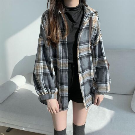 少し長めの丈でヒップラインまでしっかりカバーできるチェック柄シャツです。