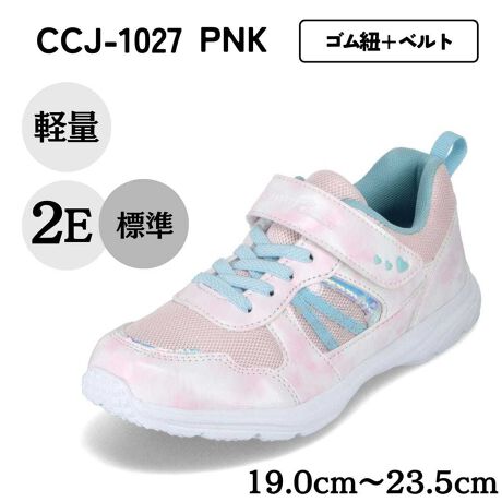 ランニングシューズ(ゴム紐+ベルト)軽量 白底【19.0cm〜23.5cm】
