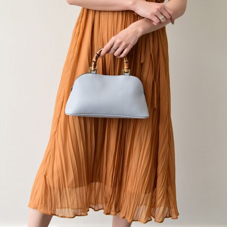 バンブーハンドルと色味が春夏らしいレザーハンドバッグは、ベーシックなフォルムでトレンドに左右されず長くお使い頂けます。