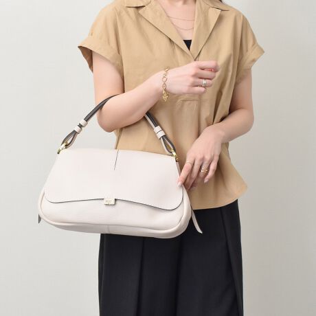 ベーシックなデザインのレザーフラップハンドバッグはトレンドに左右されず長くお使い頂けます。