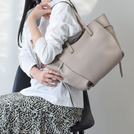 レザーを使用し大人っぽい印象のトートバッグは、開口部にファスナーがあり安心感のある仕様となっています。