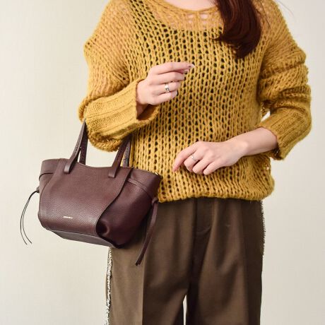 レザーを使用し大人っぽい印象のミニトートバッグは、開口部にファスナーがあり安心感のある仕様となっています。ストラップ付。