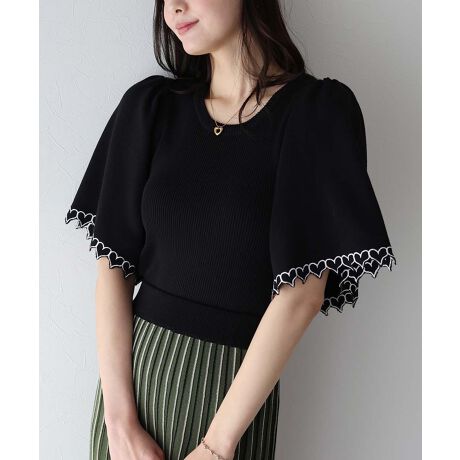 ハートが連なった袖口で、キュートなアクセントを加えたサマーニットトップス。