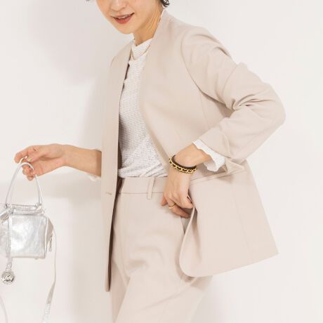 ・ストレッチ性に富んだ着心地抜群のダブルクロスシリーズのノーカラージャケット