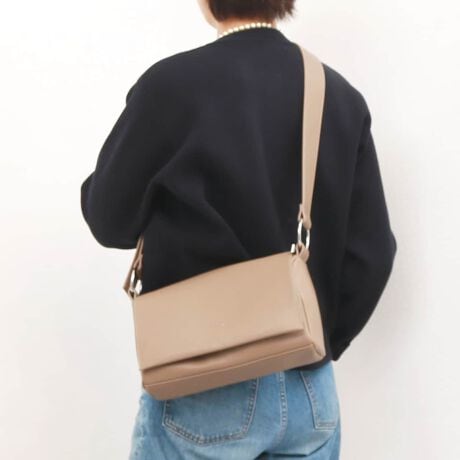 シンプルなデザインのフラップショルダーバッグ。