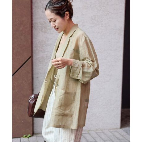 透け感の素敵なリネン混の素材でおつくりしたシャツのようなジャケット。