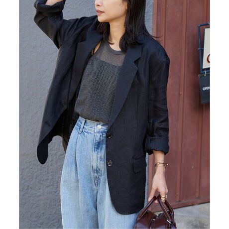 シャツやカーディガンよりもきちんと見えしつつもカジュアルにさらっと羽織れる使えるリネンジャケットです。