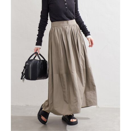 ほんのり微光沢でしなやかなタフタ素材を使用しているため、衣擦れの音などが気になりづらく、シルエットもボリューム感はありつつも上品にまとまってくれます。スウェットやスニーカーと合わせてカジュアルにこなしても、シャツやブラウス、女性らしいシューズと合わせて上品に着こなすのもおすすめです。