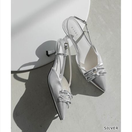 カットラインに施された華奢なリボンデザインがアクセントになるバックストラップパンプス。