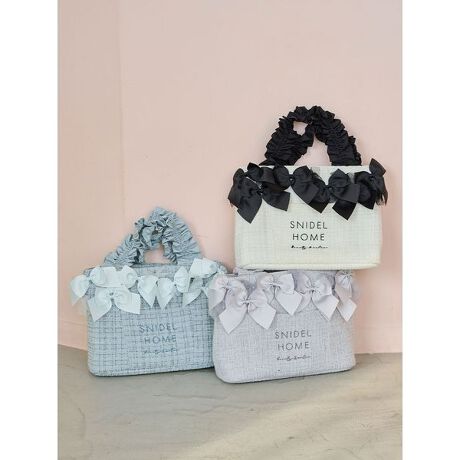 SNIDEL HOMEらしい色合いのツイード生地に、小さなリボンをたっぷりデコレーションしたハンドバッグです。