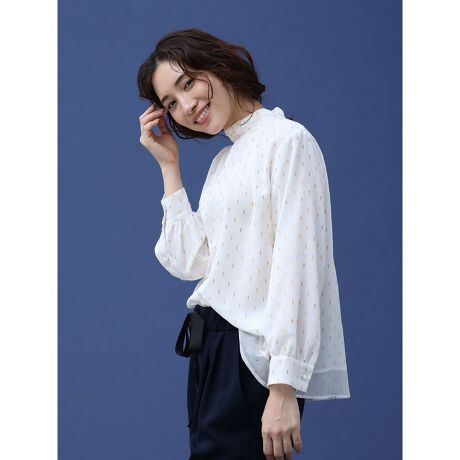 お仕事やパーティーシーンまで、幅広いシーンに対応できる華やかなブラウスです。