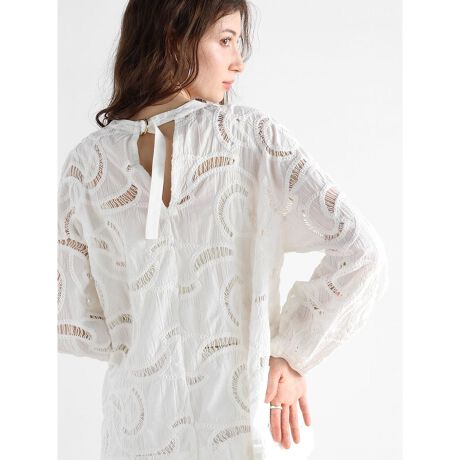 繊細な刺繍デザインが華やかな印象のブラウス。