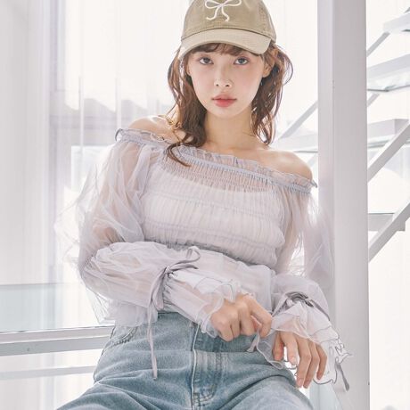 チュールの透け感がトレンドライクなトップス。