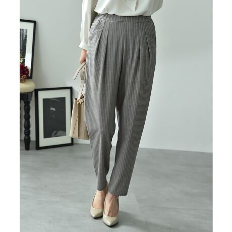 ナチュラルな見え方が魅力のカットジョーゼット素材を使用したテーパードパンツ。イージーな履き心地ながら大人っぽさを演出してくれる優秀なアイテムです。脚に自然に沿う優しい肌さわりと、タックから綺麗に落ちるラインが縦のラインを強調してくれ、スタイルアップ効果は抜群◎実用的な脇ポケットがあるのも嬉しいポイントです。