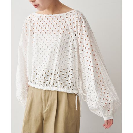 ドットのカットワークが目を引く春らしいコットンブラウス。