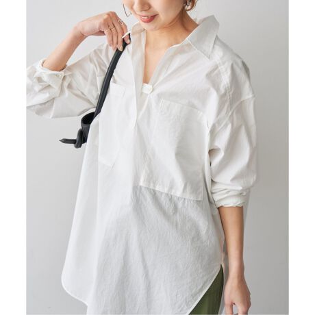 やや長めのチュニック丈ですが、ラウンドカットされた裾で抜け感を演出。