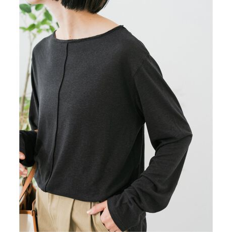 着心地:広めの襟ぐりや長めの袖丈が女性らしく、シンプルながらも洒落感の出る一枚。