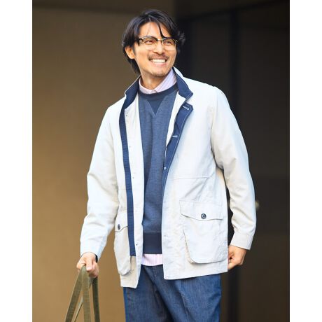 軽く羽織れるカバーオールです。撥水性に優れた、表情のあるナイロンタッサー生地を使用しています。裏地は半裏仕様でインナーを調整すれば長い期間で着用いただけます。お手入れが楽な家庭洗濯(手洗い)が可能です。