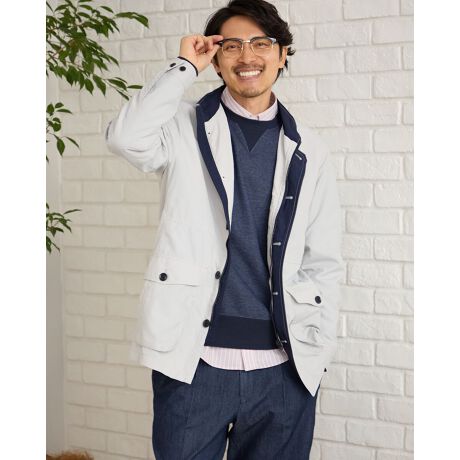 軽く羽織れるカバーオールです。撥水性に優れた、表情のあるナイロンタッサー生地を使用しています。裏地は半裏仕様でインナーを調整すれば長い期間で着用いただけます。お手入れが楽な家庭洗濯(手洗い)が可能です。