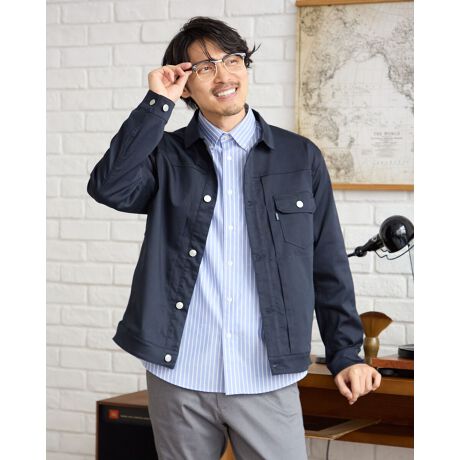 アメカジの王道Gジャンを快適な着心地で提案です。上品なサテン生地を使用しています。デニムの動きづらさを解消し、着心地のよさを追求しました。ラフに羽織れるのはもちろん、きっちりボタンを閉めれば上品なコーディネートを演出します。お手入れが楽な家庭洗濯(手洗い)が可能です。