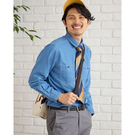 着回しやすいレギュラー襟シャツです。ライトオンスのデニム生地を使用しています。薄手で軽く、やわらかな肌触りが特徴です。製品洗いを施し表情のある風合いに仕上げました。インディゴ染めの為、洗うたびに風合いの変化をお楽しみいただけます。