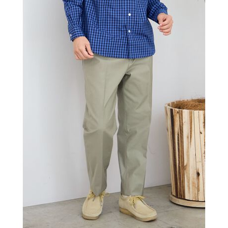 レギュラーシルエットのワンタックスラックスです。緯糸にスラブ糸を使用し表情のある風合いに仕上げました。ストレッチ性に優れた綿ポリウレタン混生地を使用しています。ウエスト部分にもストレッチ性があり快適なはき心地です。どのスタイルにも合わせやすいボトムスです。