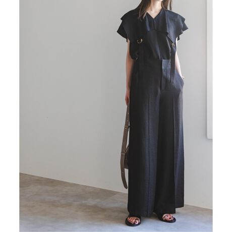 大人気のファジーリネンスクエアケープブラウスとのセットアップでの着用が可能。