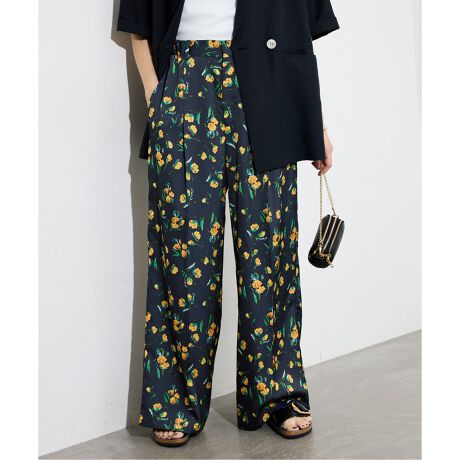 ヴィンテージ風のオリジナルの花柄をプリントしたイージーパンツ。