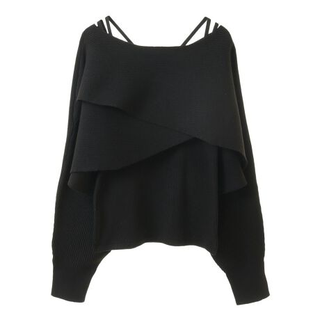 クロスニットとキャミソールをセットにした着映えトップス。左右に交差させたオーバーシルエットに横リブがモード感のあるデザインです。大きく開いた首元とキャミソールのストラップがフェミニンなムードを演出。シンプルなワンカラーでコーディネートに合わせやすく、カジュアルなデニムからスカートまで幅広く合わせていただけます。