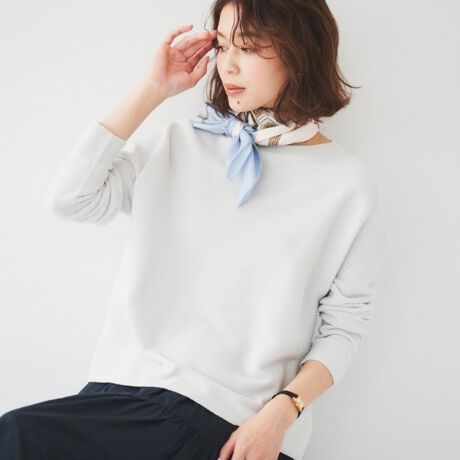 パンツにもスカートにも合わせ易い着丈で着回し力が魅力のニットです。