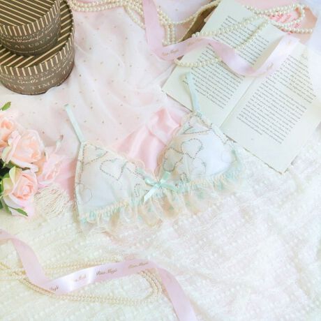 ストラップにはアクセサリーをイメージしたハートのアップリケをあしらい、シアーなフリルレースとの組み合わせが、思わず目をひく豪華なディテールに仕上がりました。細部までこだわりを詰め込んだ、Sweetなバレンタインコレクションをお楽しみください。