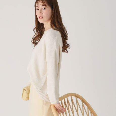 前後差のあるデザインでパンツにもスカートにも合わせやすく、オンオフで活躍します。