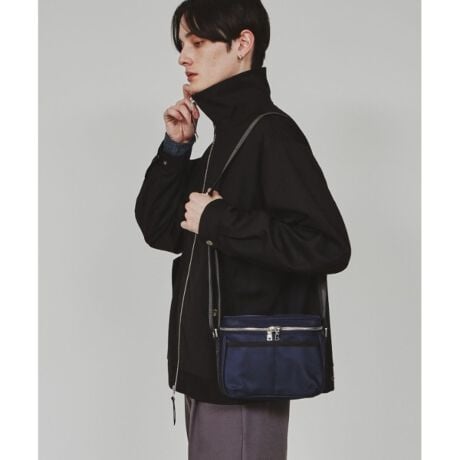 上品な見た目なナイロン使用したボックス型のショルダーバッグ。