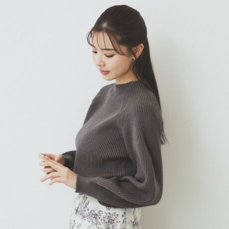 ミドルゲージの適度なハリ感を活かした構築的なシルエットが魅力!ラグランスリーブリブニット