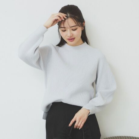 ミドルゲージの適度なハリ感を活かした構築的なシルエットが魅力!ラグランスリーブリブニット