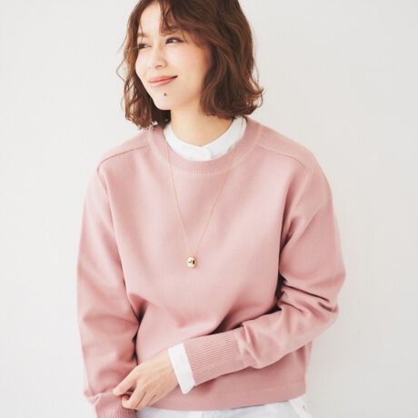 スポンディッシュでトレーナーのような編地を活かしてドルマンスリーブにボリュームを持たせつつ、