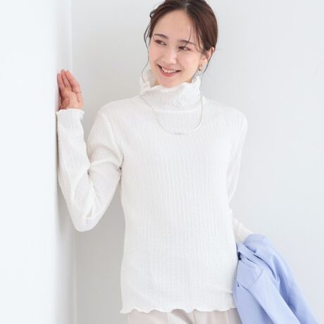 タートルネックをクシュっとさせたような襟がポイントのインナーです。