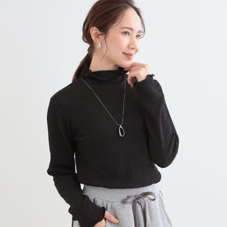タートルネックをクシュっとさせたような襟がポイントのインナーです。
