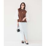 シンプルなニットベストは気温や気分に合わせて、カーディガン合わせやタックインしてジャケットを羽織ったり、