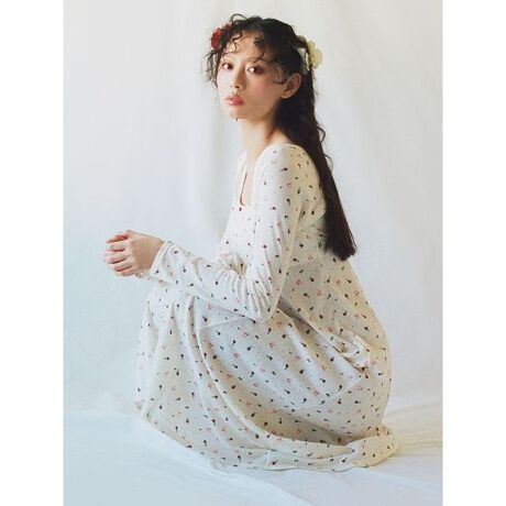プティローズブラレットセット(品番:LLFO251501)と同じ柄をプリントで表現したナイトブラドレス。ナイトブラのカップをそのままワンピースにドッキングさせ、ルームウェアとしてはもちろん、就寝時のパジャマとしても快適にご使用いただけます。ショート丈のボレロとノースリーブのワンピースがセットになったデザインで、アウター風のワンマイルウェアとしても活躍。お部屋の中でも外でも、可愛らしさと機能性を兼ね備えたスタイリングをお楽しみいただけます。