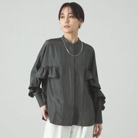 フリルデザインが華やかさを演出してくれるデザインブラウス。