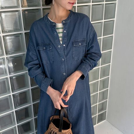 ソフトデニムバンドカラーワンピース