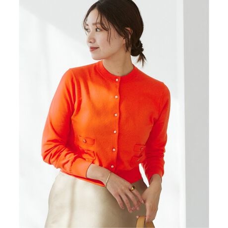 ポケットとメタルボタンがポイントのクルーネックカーディガン。