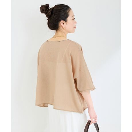 ざっくりとした編地のほどよい透け感でハリのあるライトな素材感が特徴で、身体にまとわりつかず真夏までさらっと着ていただけます。
