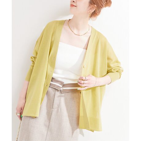 ドライタッチな軽い着心地のワイドVネックニットカーディガン。