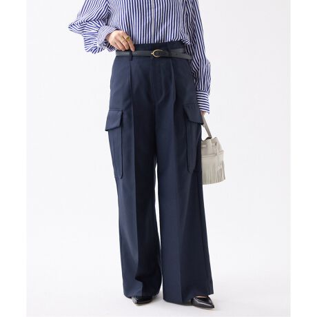 綺麗なスラックスのシルエットをベースに、あえて斜めにしたカーゴポケットで女性らしいバランスに。